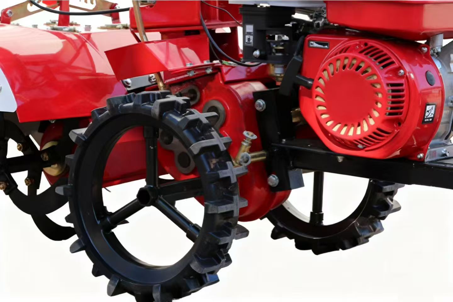 - Прочная конструкция: рама трактора изготовлена из высокопрочной стали, а стойки культиватора — из антикоррозийного сплава, что обеспечивает устойчивость к износу даже при ежедневном использовании на грязных или каменистых полях.