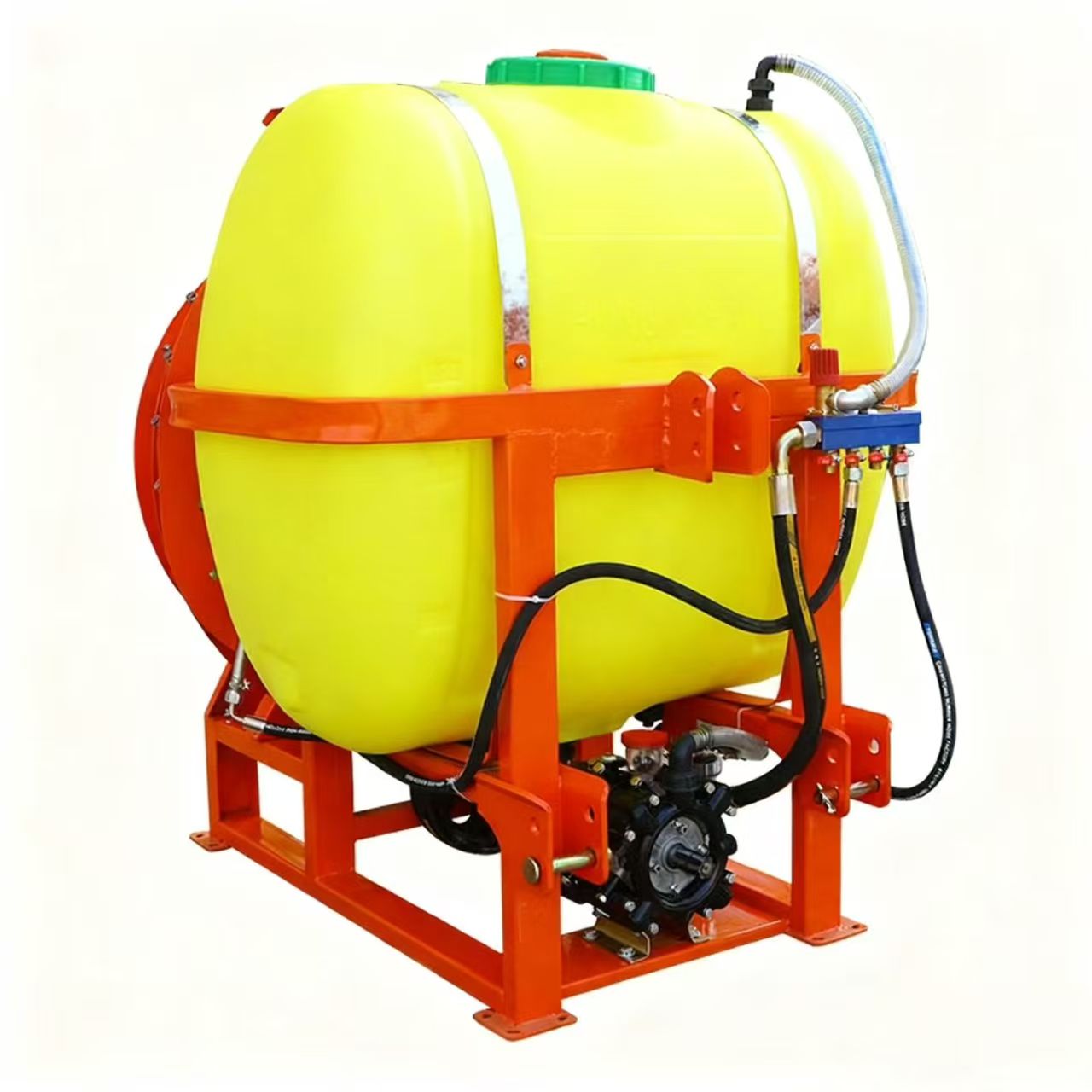 Ключевые компоненты распыления включают регулируемые вентиляторы и многоугольные форсунки. Вентиляторы создают сильный, сфокусированный поток воздуха, перенося капли пестицидов глубоко в кроны деревьев, достигая даже внутренних ветвей, а форсунки с 3-5 схемами распыления адаптируются к различной плотности сада: от низкорослых ягодных кустов до высоких яблонь. Прочная стальная рама фиксирует все детали, а антивибрационные подушки сводят к минимуму повреждения во время работы.тракторпередвижение по неровной местности.