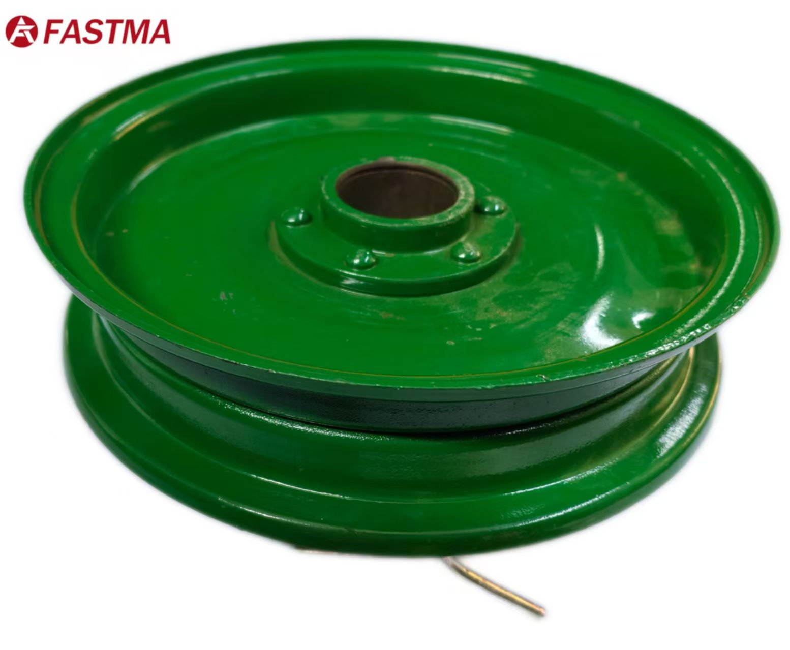 Являясь ключевым компонентом системы передачи, ременный шкив FASTMA опирается на фрикционную связь между канавкой шкива и ремнем, обеспечивающую передачу мощности. Когда ведущее колесо вращается вместе с источником энергии, таким как двигатель или двигатель, трение между канавкой колеса и ремнем приводит ремень в движение синхронно. Затем ведомое колесо вращается под действием тяги ремня, плавно передавая мощность на рабочие части, такие как грабильный ролик и оборудование производственной линии. Встроенная конструкция подшипника снижает потери на трение во время вращения, а конструкция спиц снижает рабочий шум, делая весь процесс передачи более плавным и энергоэффективным.