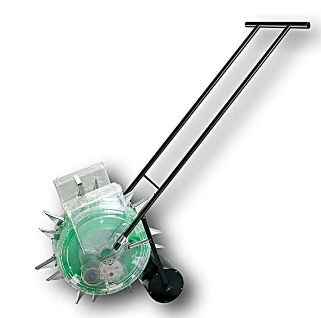 Ручная сеялка с разбрасывателем удобрений работает при помощи ручного толкания. Когда пользователи толкают сеялку с ручным управлением с разбрасывателем удобрений вперед, активируется ее внутренняя система передач.