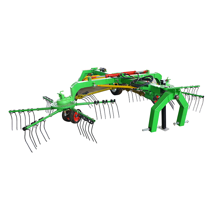 Он использует особенно хорошую конструкцию кулачка, которая очень синхронизирована с трактором, и имеет встроенную автоматическую функцию качания, что делает сгребание более ровным.